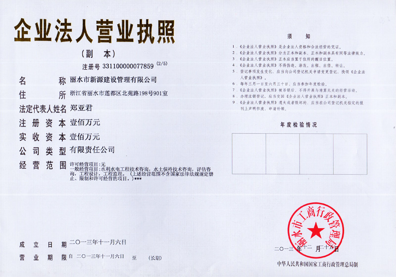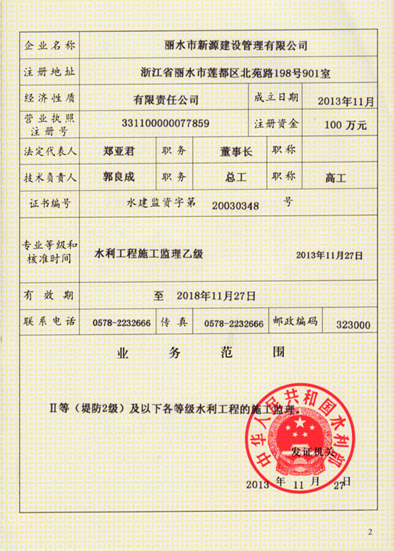 水利工程施工監(jiān)理資質(zhì)證書(shū)